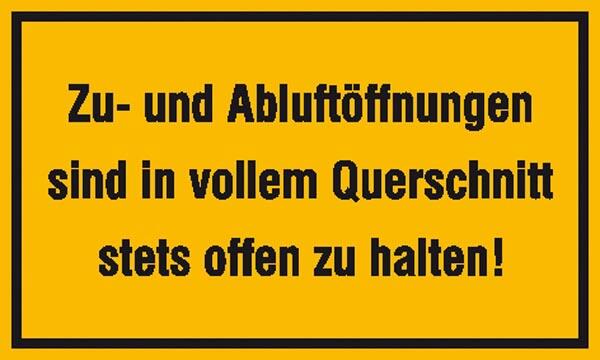 Modellbeispiel: Hinweisschild: Zu- und Abluftöffnungen sind in vollem... (Art. 21.5981)