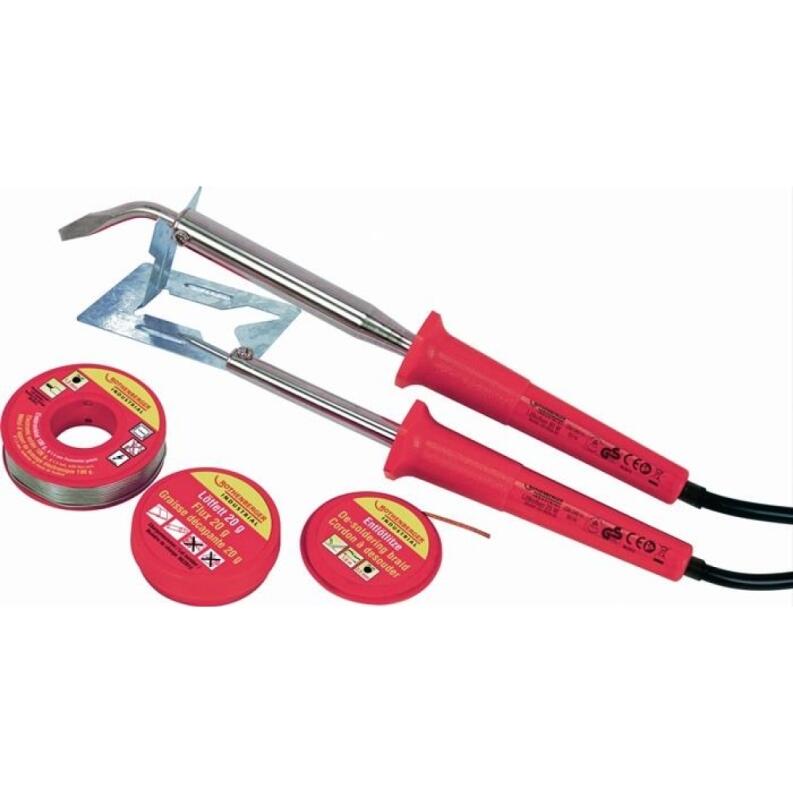Set mit 2 Lötkolben mit unterschiedlichen Leistungswattstufen - diese ermöglichen die Bearbeitung sowohl feiner Verbindungen als auch größerer Lötstellen