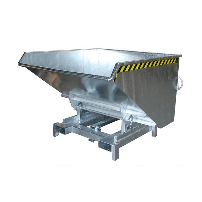 Manuelle Entriegelung per Seilzug vom Staplersitz Behältermulde schwenkt automatisch wieder in die Ausgangsposition zurück günstiger Lastschwerpunkt ermöglicht optimale Ausnutzung der Staplertragfähigkeit vollständige Entleerung dank Zugseilentriegelung auch in großer Höhe