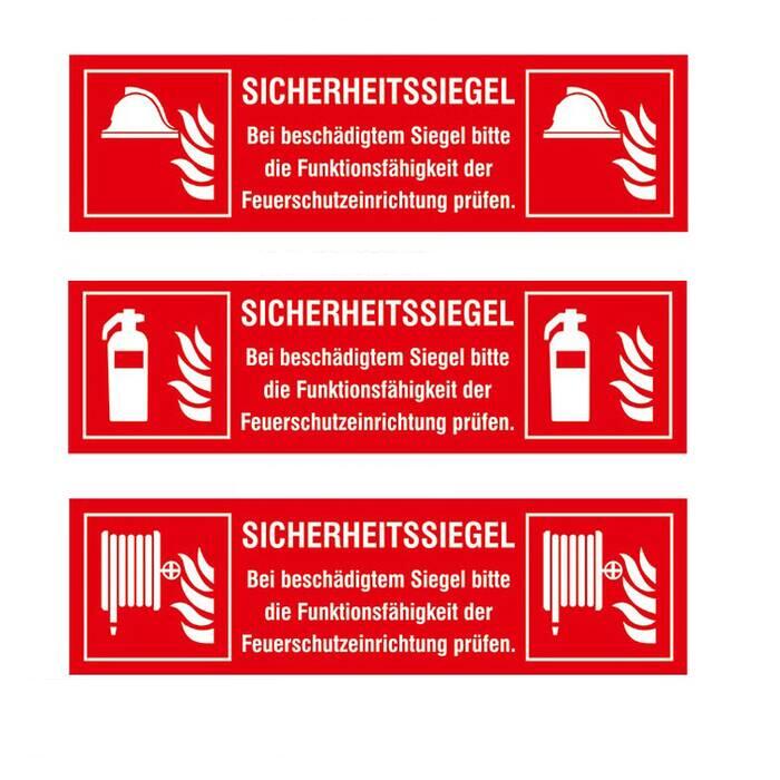 Sicherheitssiegel, Brandschutz mit unterschiedlichen Symbolen, Rolle oder Bogen