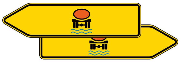 Verkehrszeichen 421-42 StVO, Pfeilwegweiser für Fahrzeuge mit wassergef. Ladung, doppelseitig