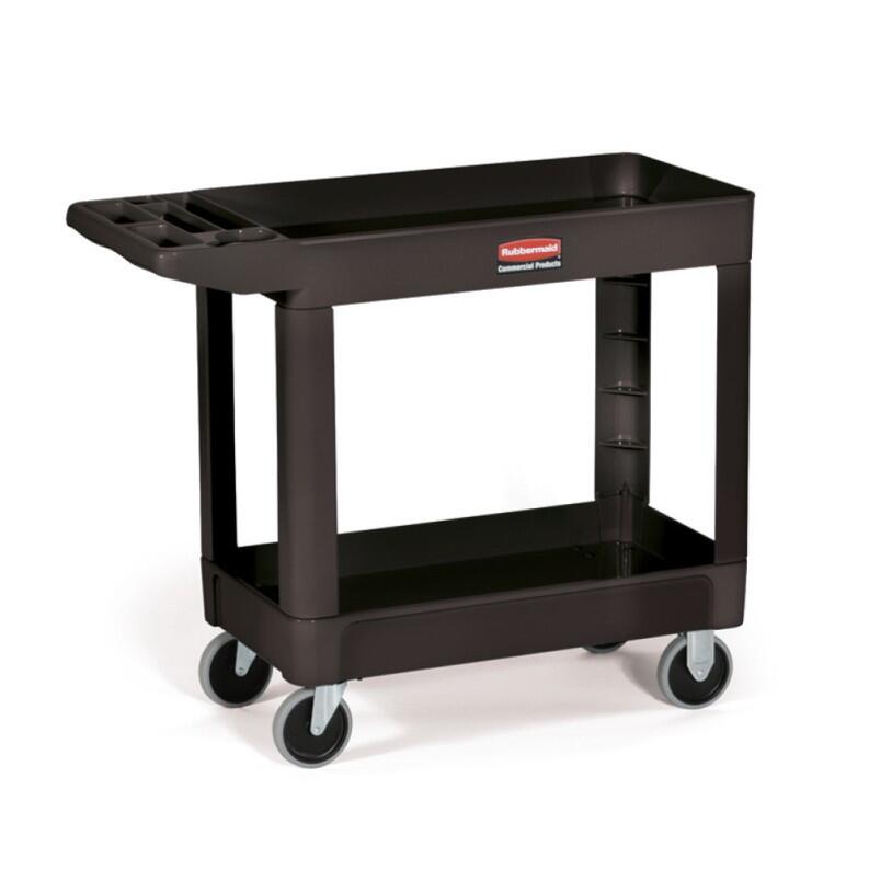 Transportwagen aus robustem Polypropylen für intensive Nutzung. Das oberste Fach verfügt über einen erhöhten Rand, sodass der Inhalt während des Transports an seinem Platz bleibt. Ausgestattet mit einem ergonomischen Griff, zwei festen und zwei schwenkbaren Rollen sowie leicht erreichbaren Werkzeug- und Zubehörhaken und einer Aufbewahrungsbox. Tragfähigkeit bis zu 226 kg.